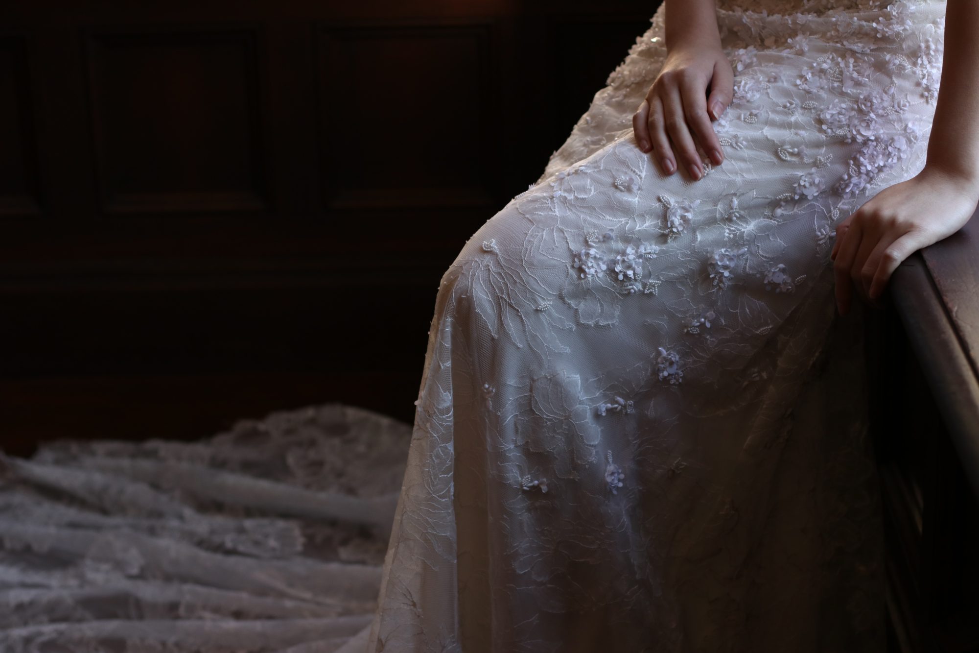 ふわっと広がるオーセンティックな美しさのトレーンは、