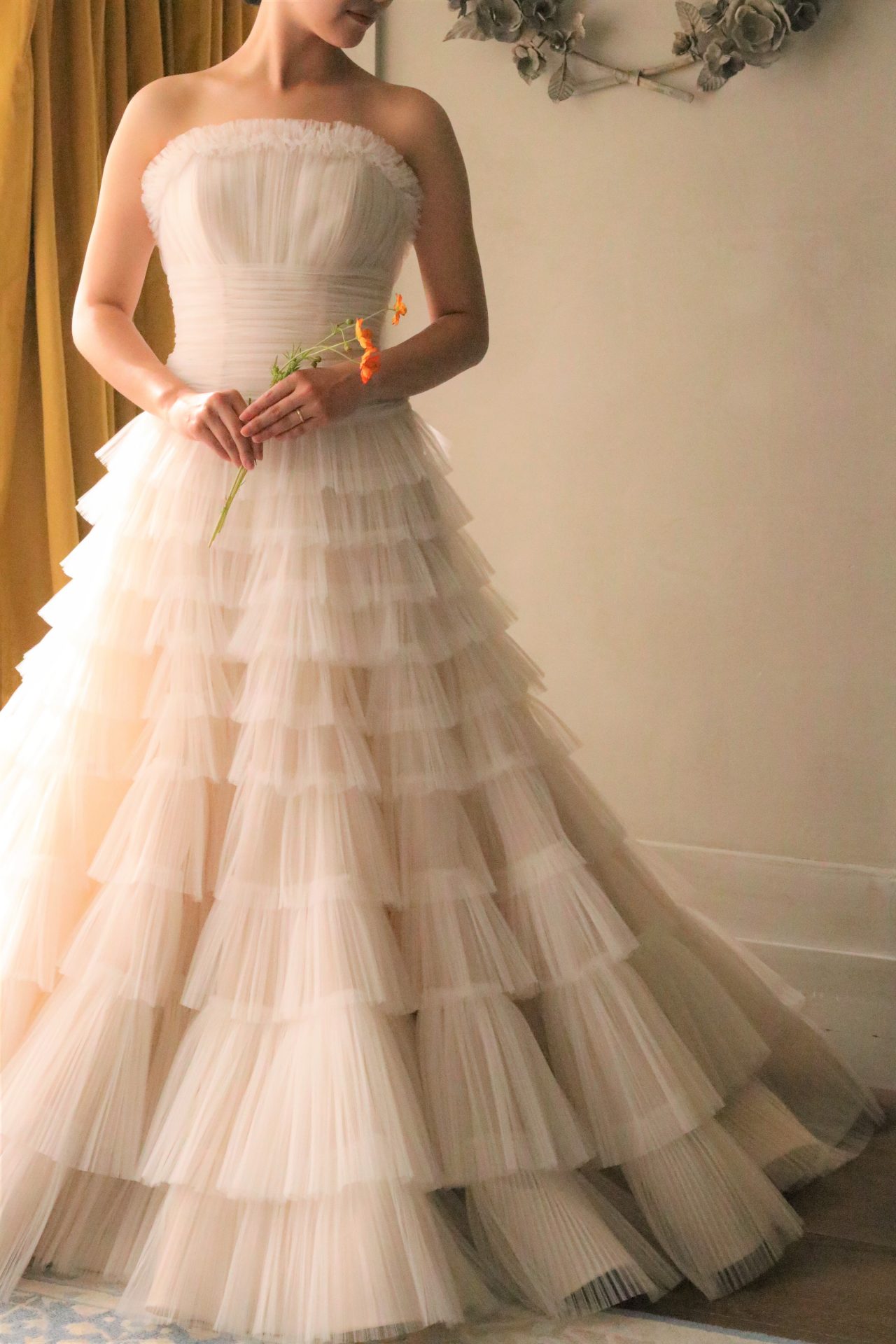 今回ご紹介するのはトレンドでもあるティアードのウェディングドレス。