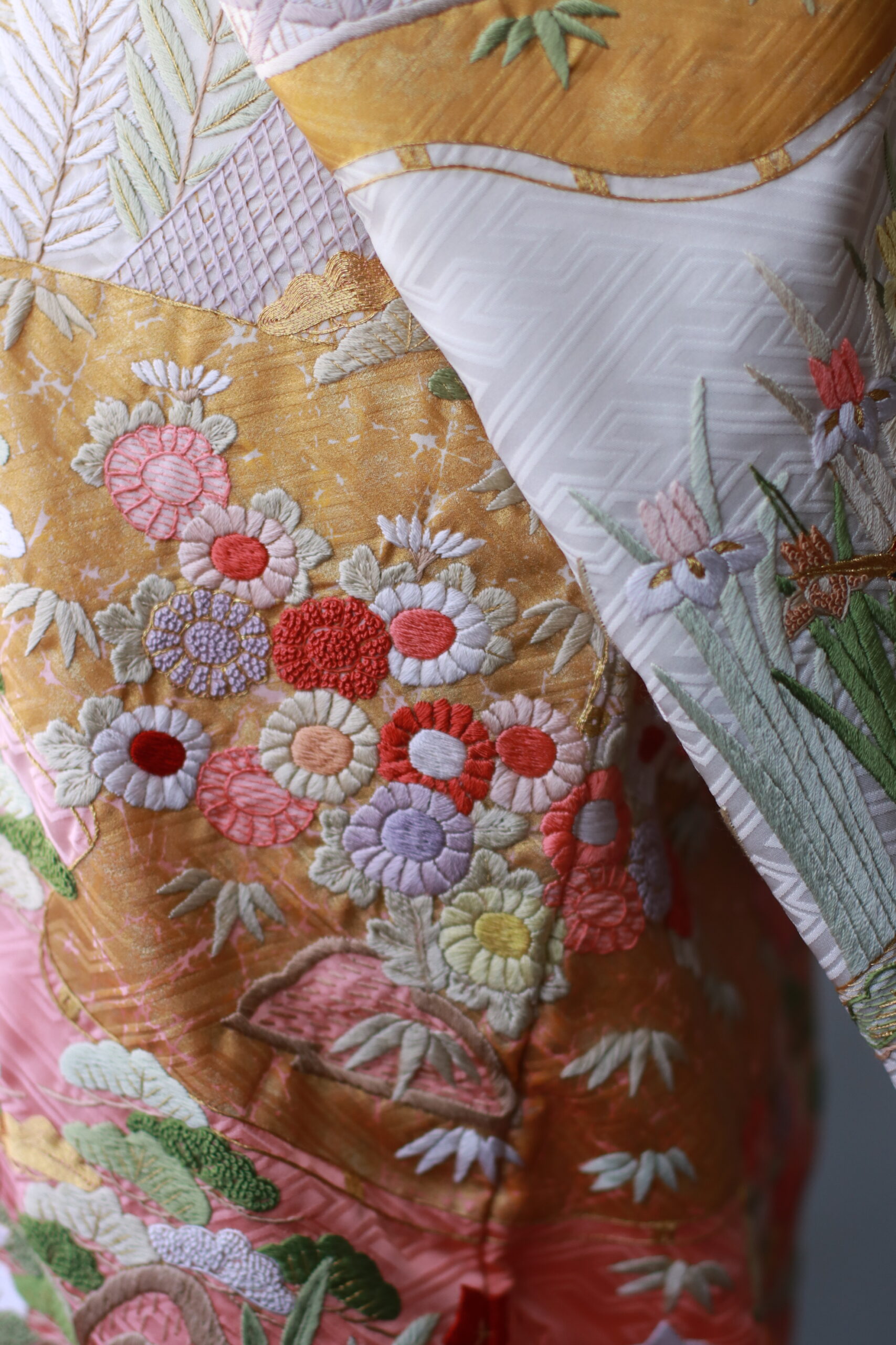 白地がベースにくることで日本に溢れる自然から生まれる多くの色味と調和し、この着物を纏う花嫁の魅力をより一層引き立てることでしょう。