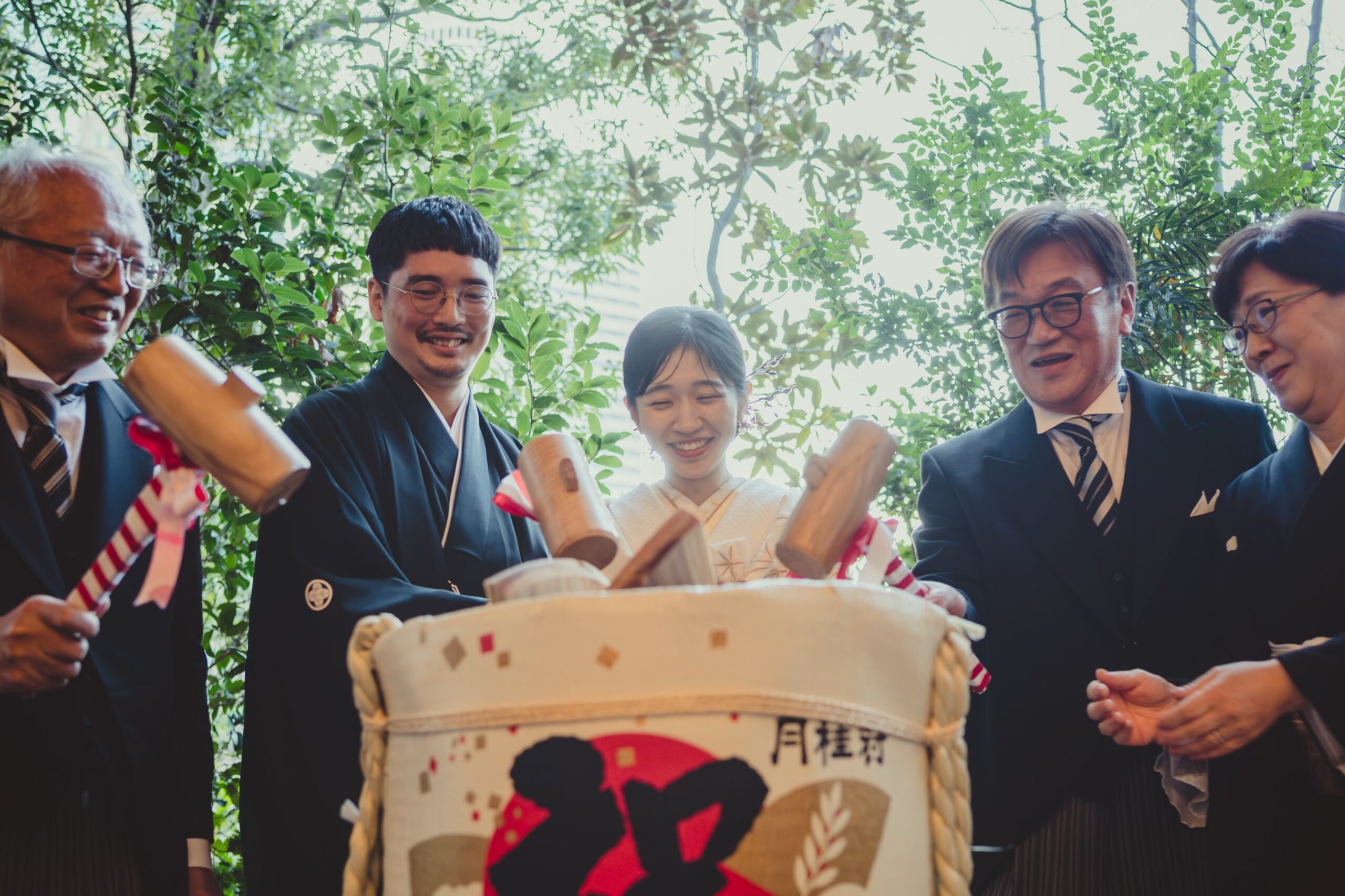 和装だからこその鏡開きの演出を取り入れ、会場いっぱいに笑顔と拍手が広がる賑やかで温かな披露宴がスタートしました。