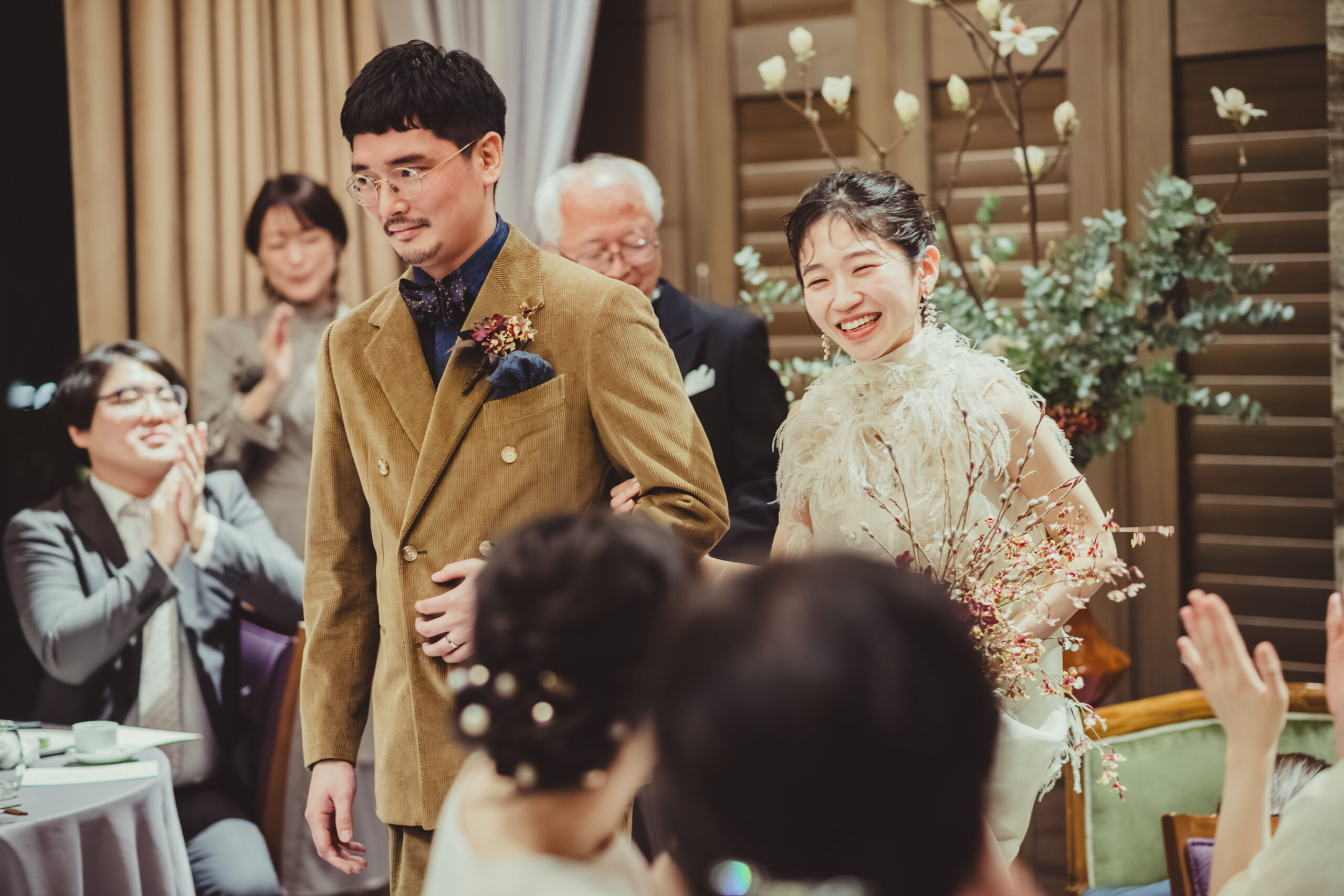 クラシカルな空間に冬のやわらかな光が差し込み、伝統とモダンが溶け合うように、お二人のセンスが息づく結婚式となりました。