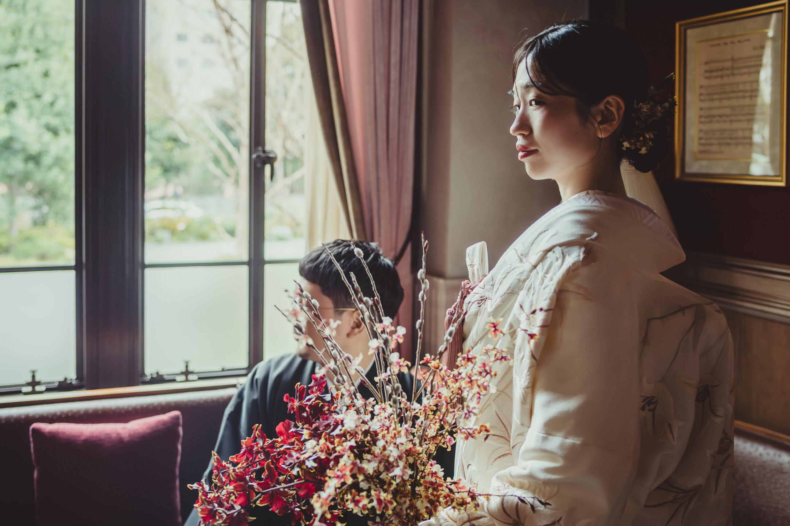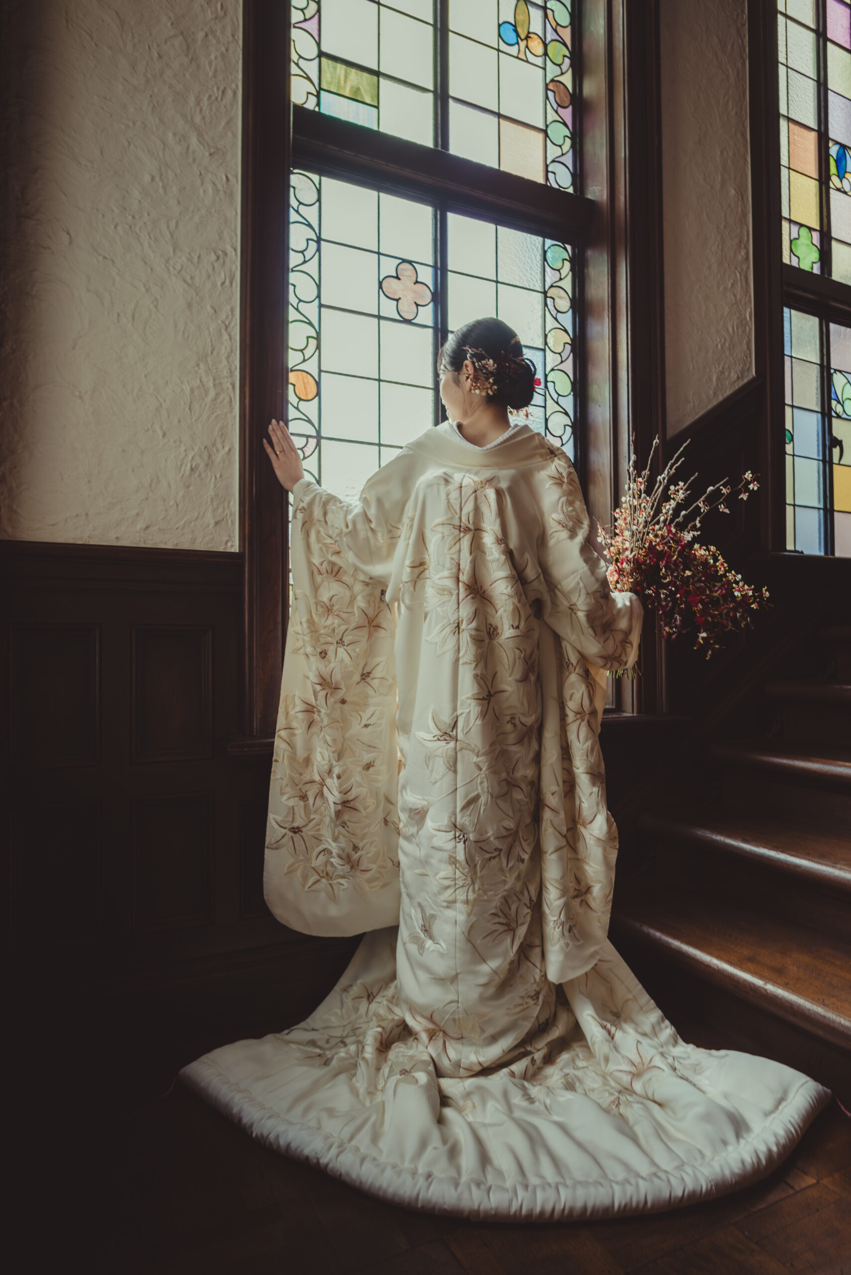 白無垢という伝統の象徴がクラシカルな洋館の中で美しく輝きました。