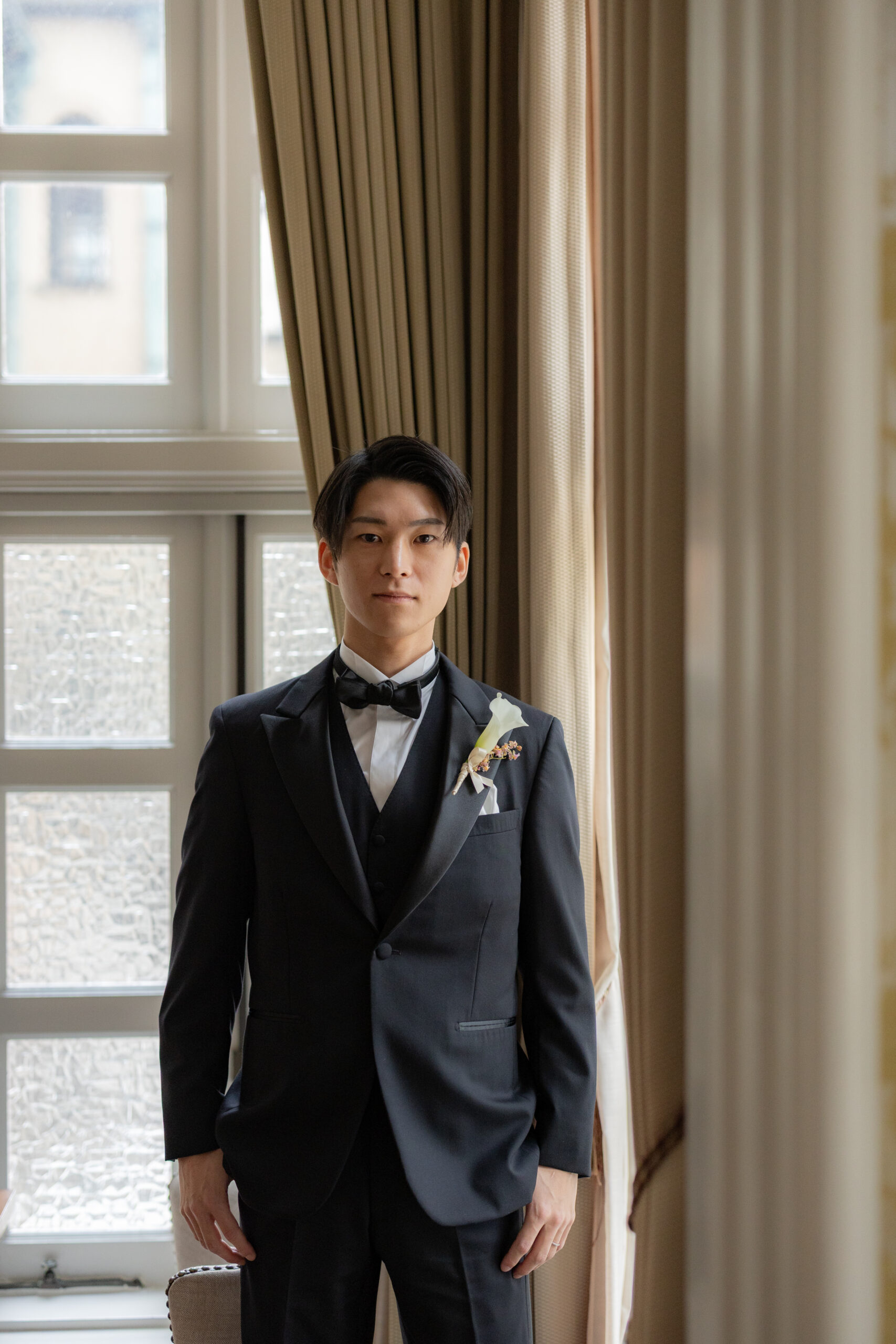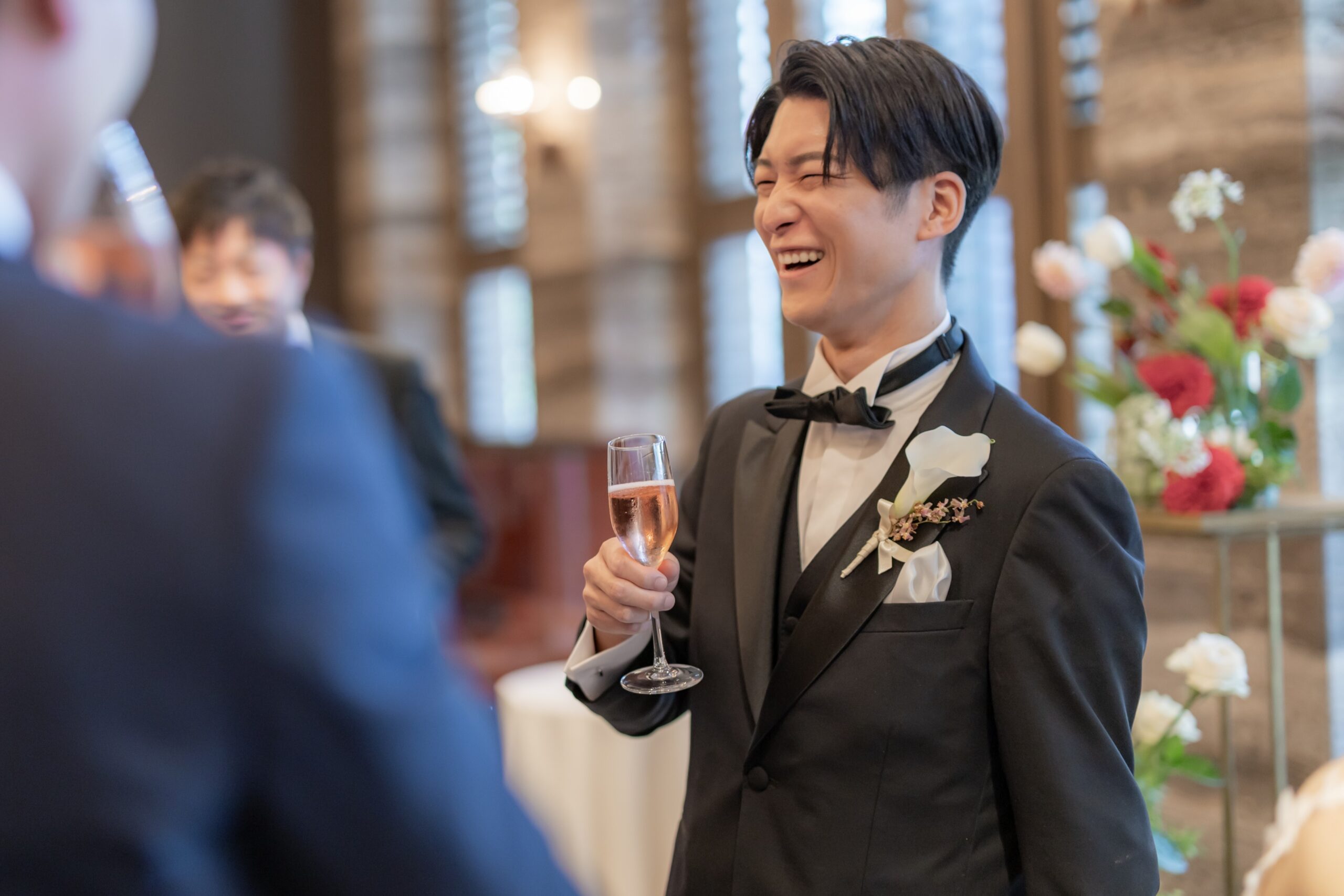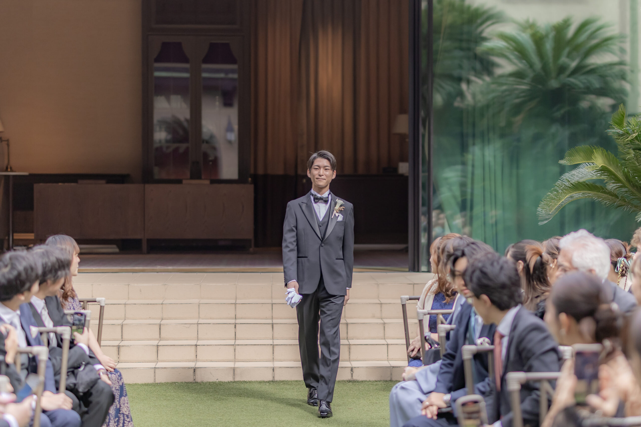 ご新婦様をエスコートするのはもちろん、パーティーのホストとして結婚式に相応しいオーセンティックな佇まいとなりました。