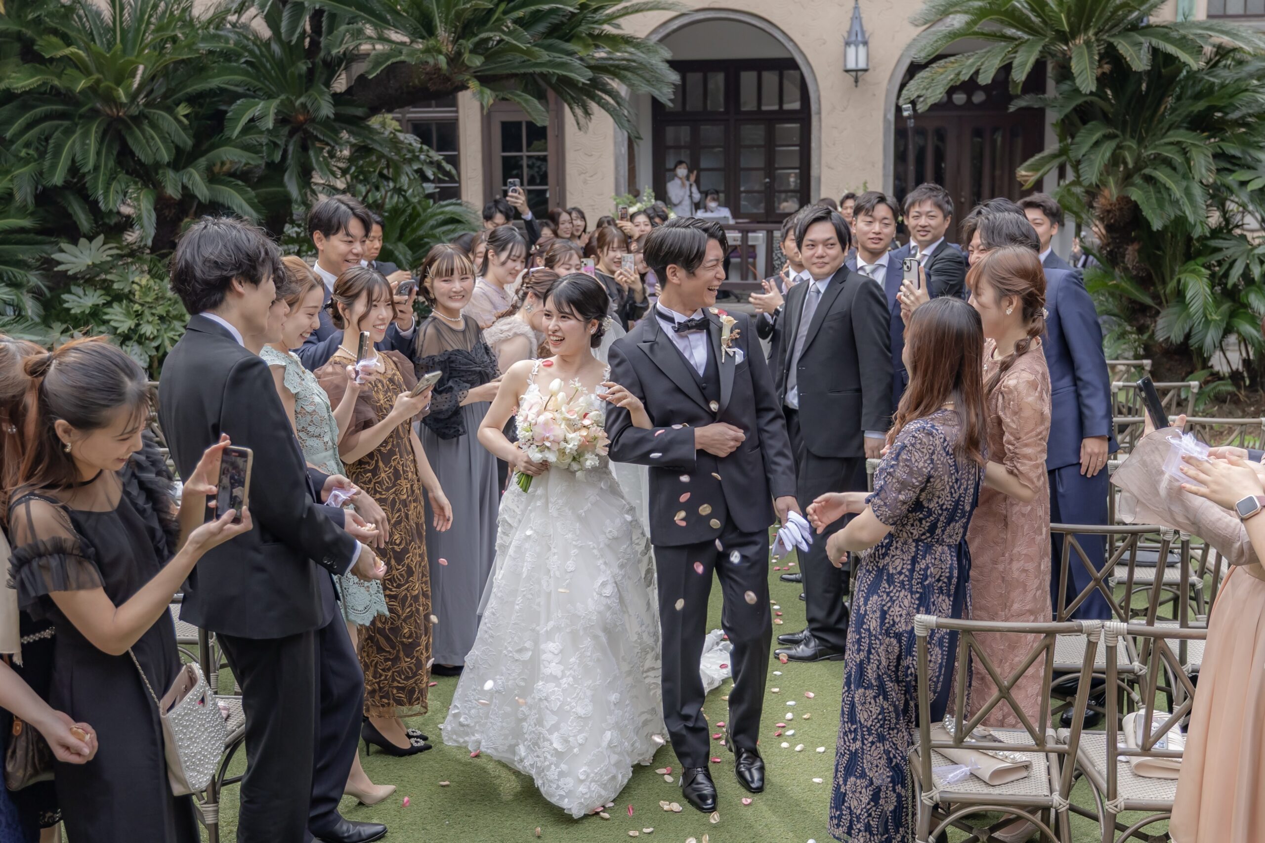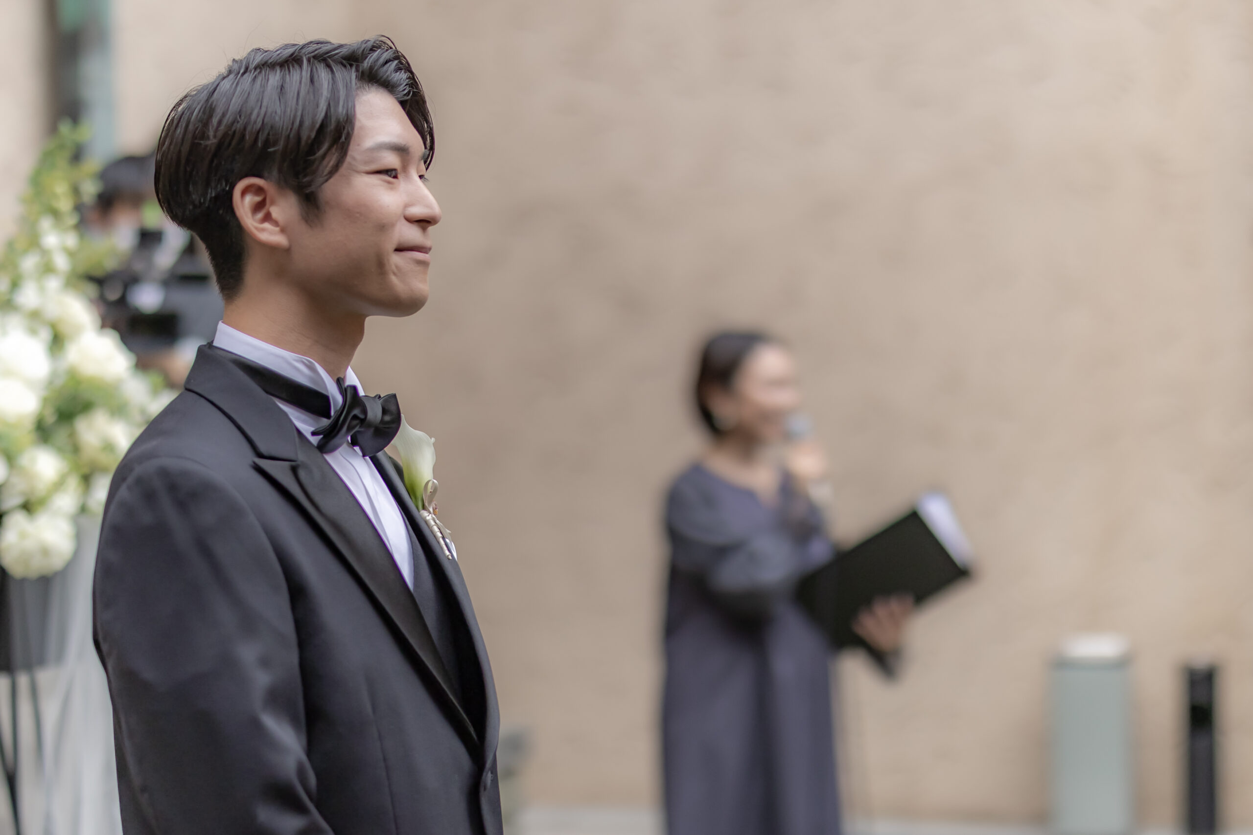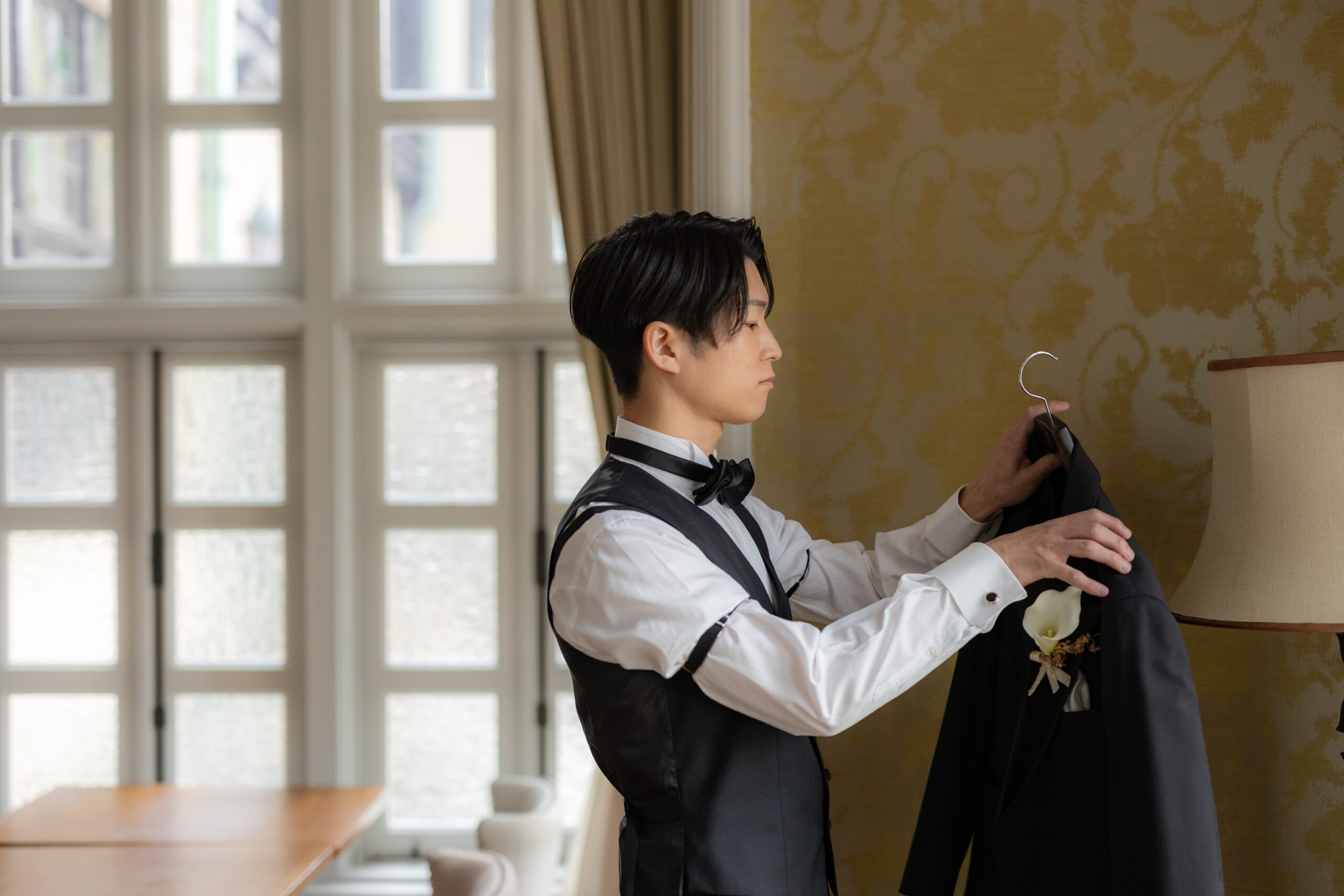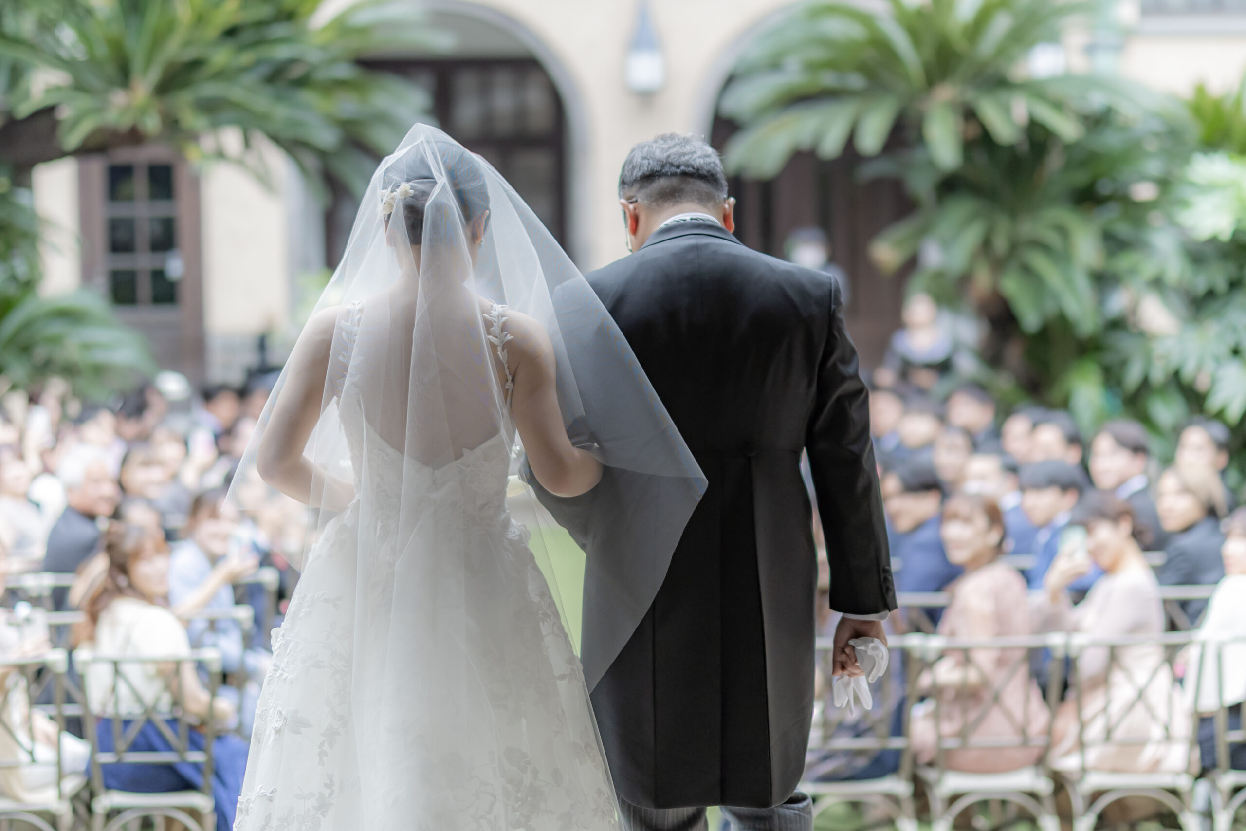 ご新婦様をエスコートするのはもちろん、パーティーのホストとして結婚式に相応しいオーセンティックな佇まいとなりました。