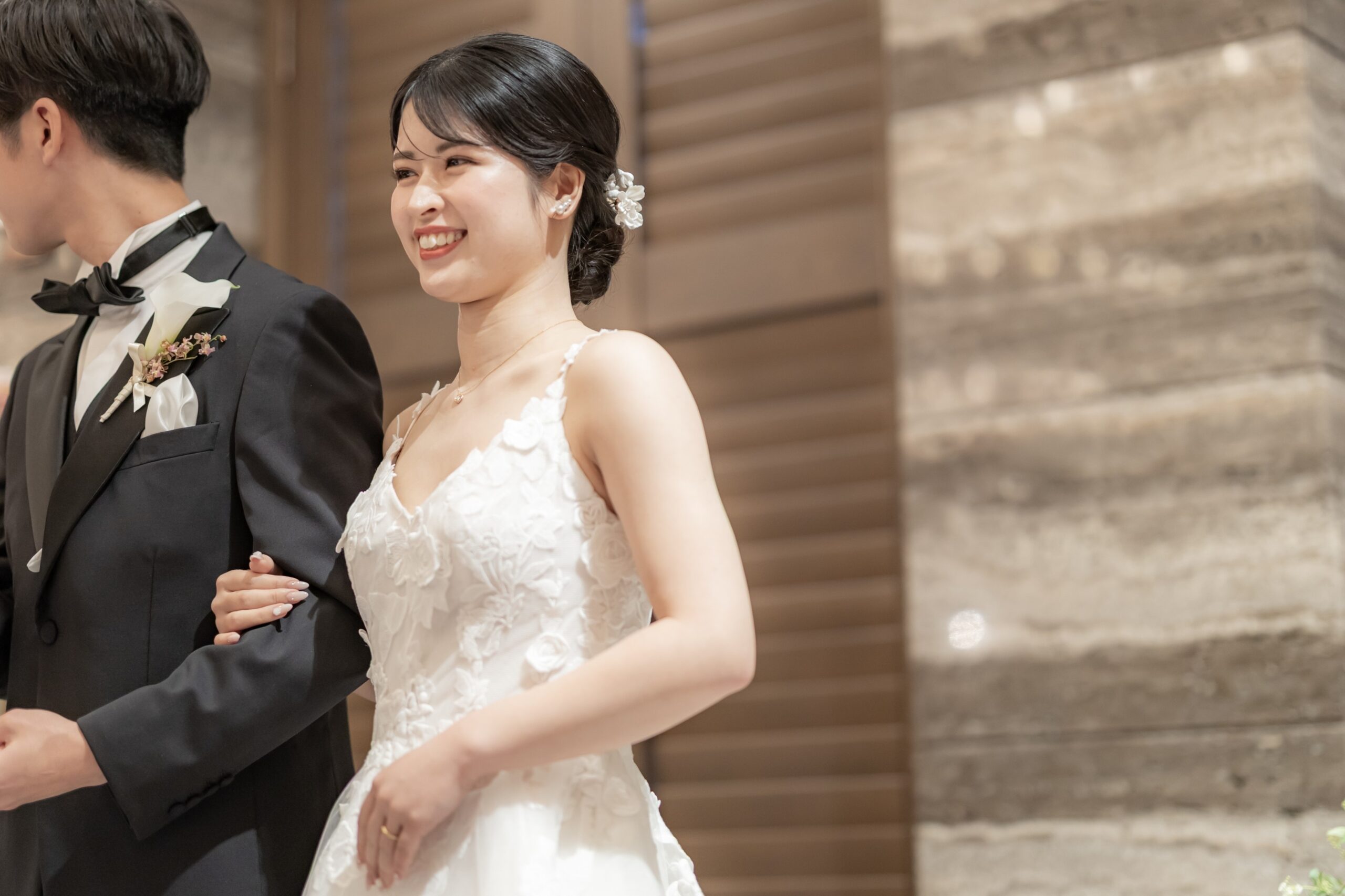 振り返るとご新婦様の美しい姿が目に写り、自然と笑顔が溢れます。
