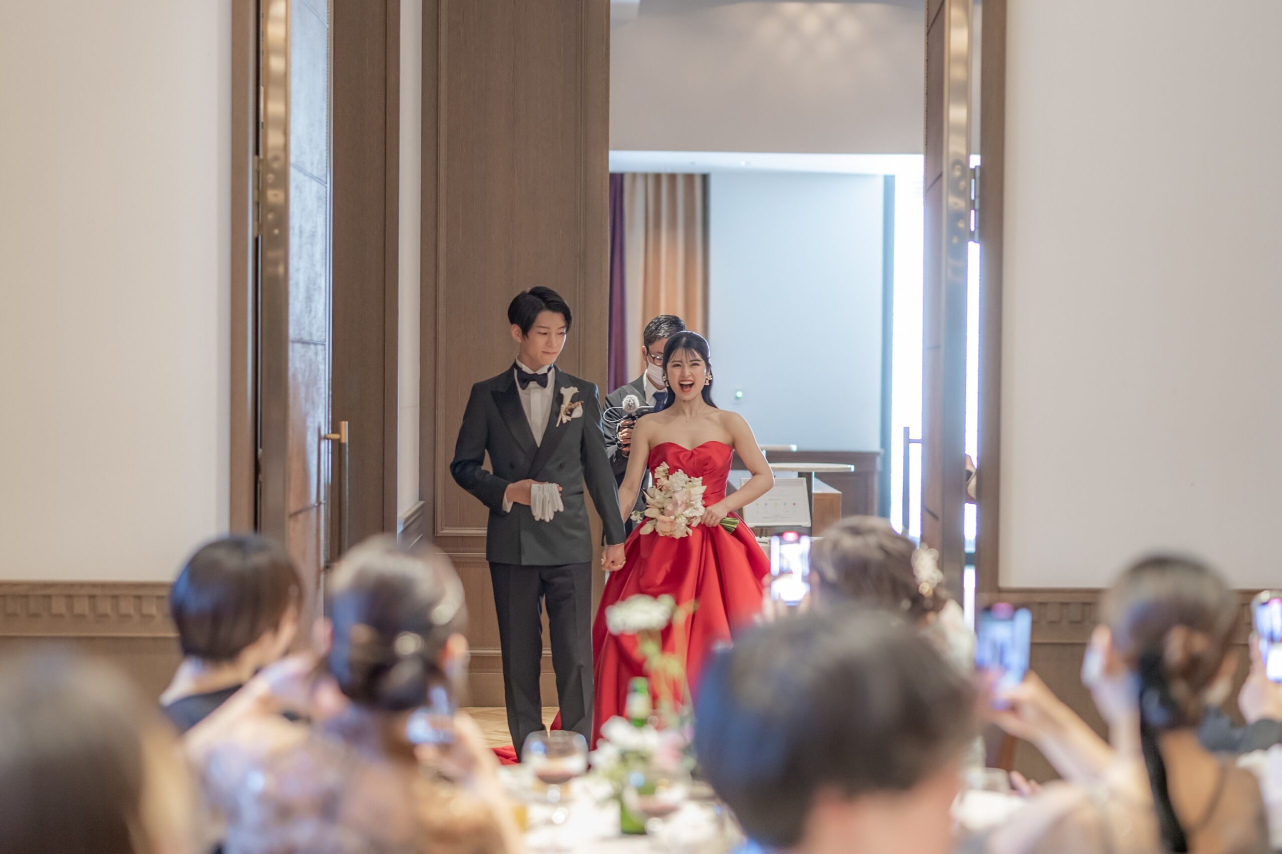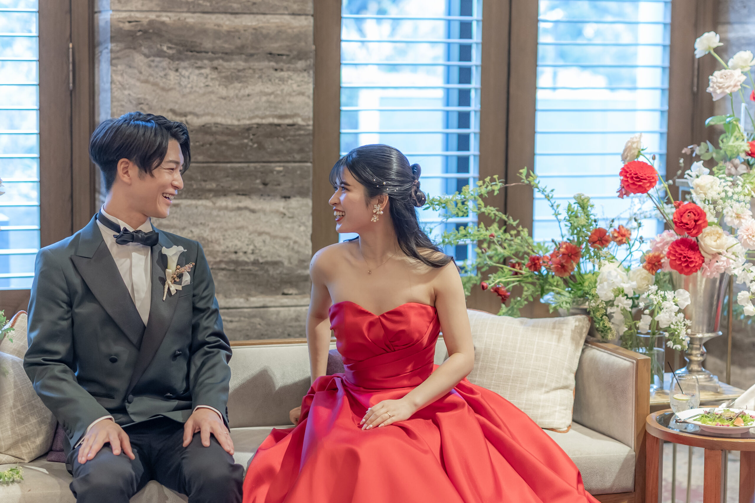 ウェディングドレスとは印象を変え、お色直しでは鮮やかなレッドのカラードレスをセレクトされました。