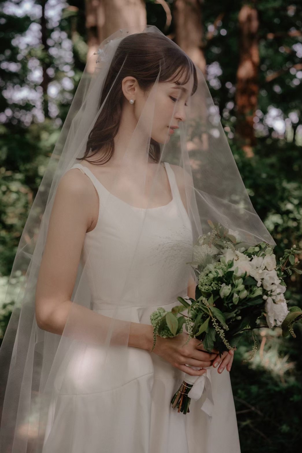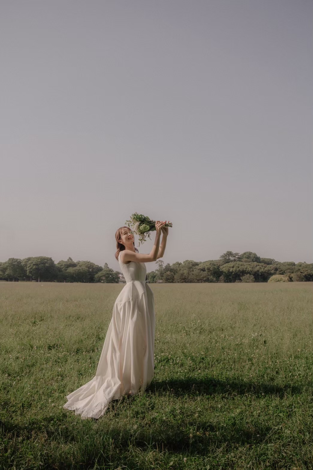 1スタイル目は、そんなサチさんらしく自然の中で走り出せそうなナチュラルなウェディングスタイル。