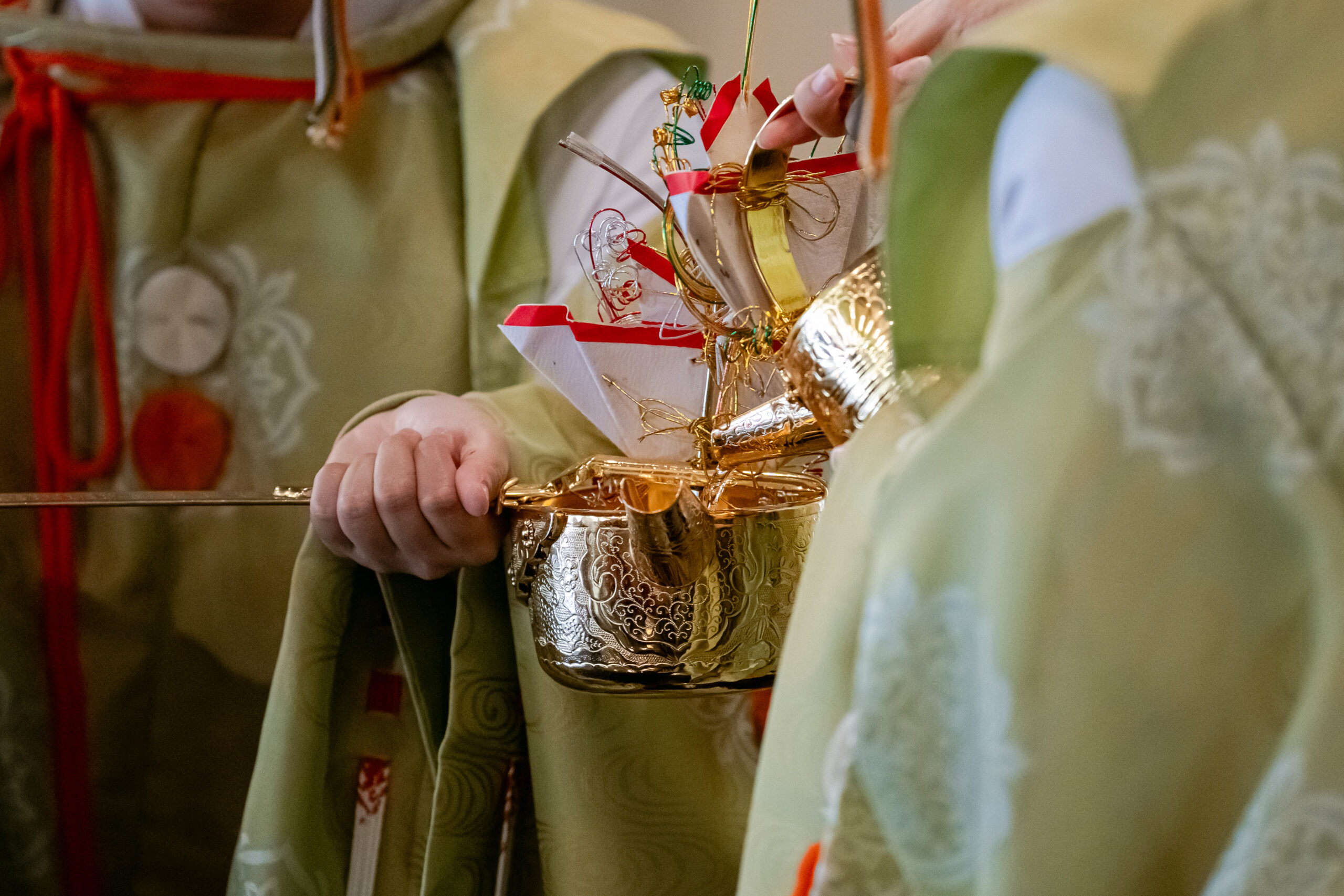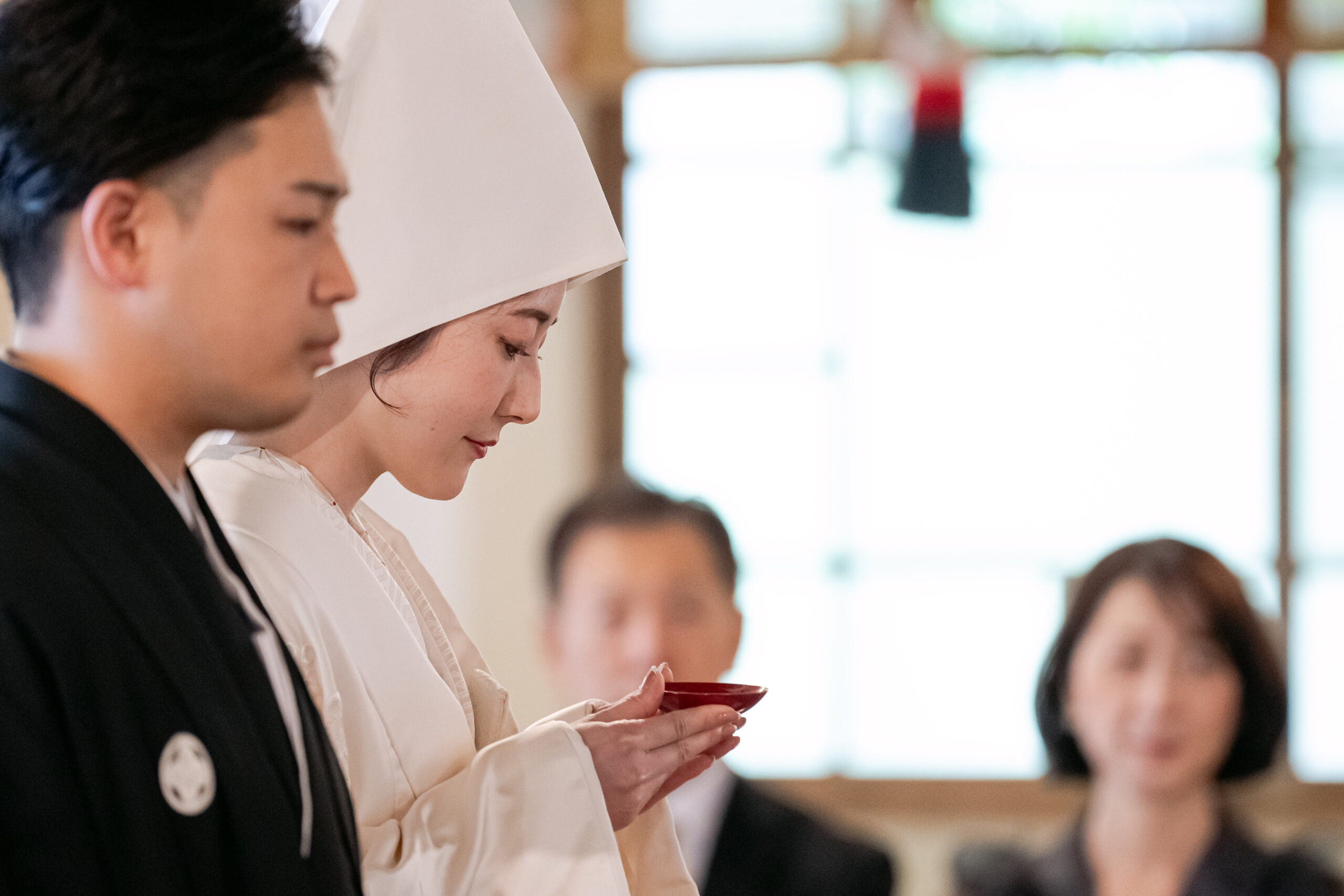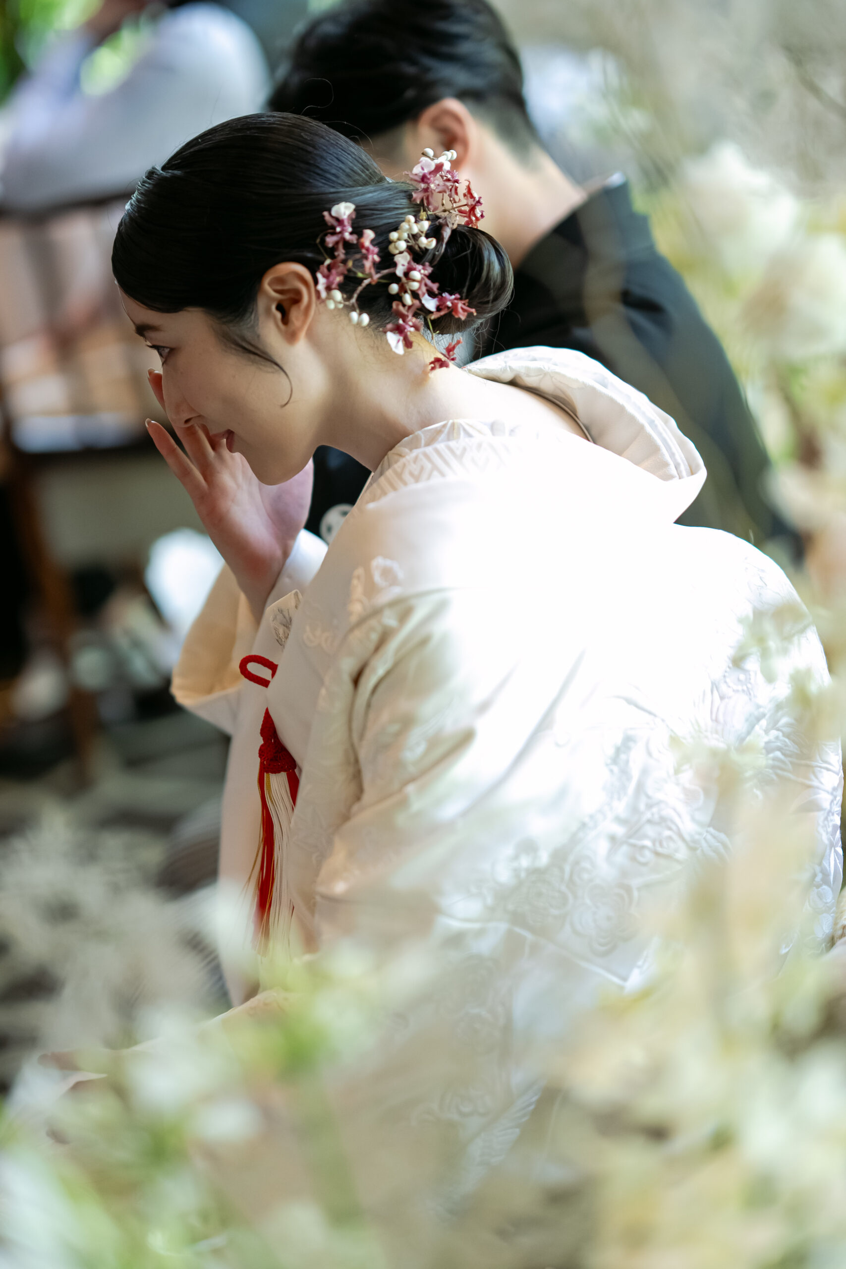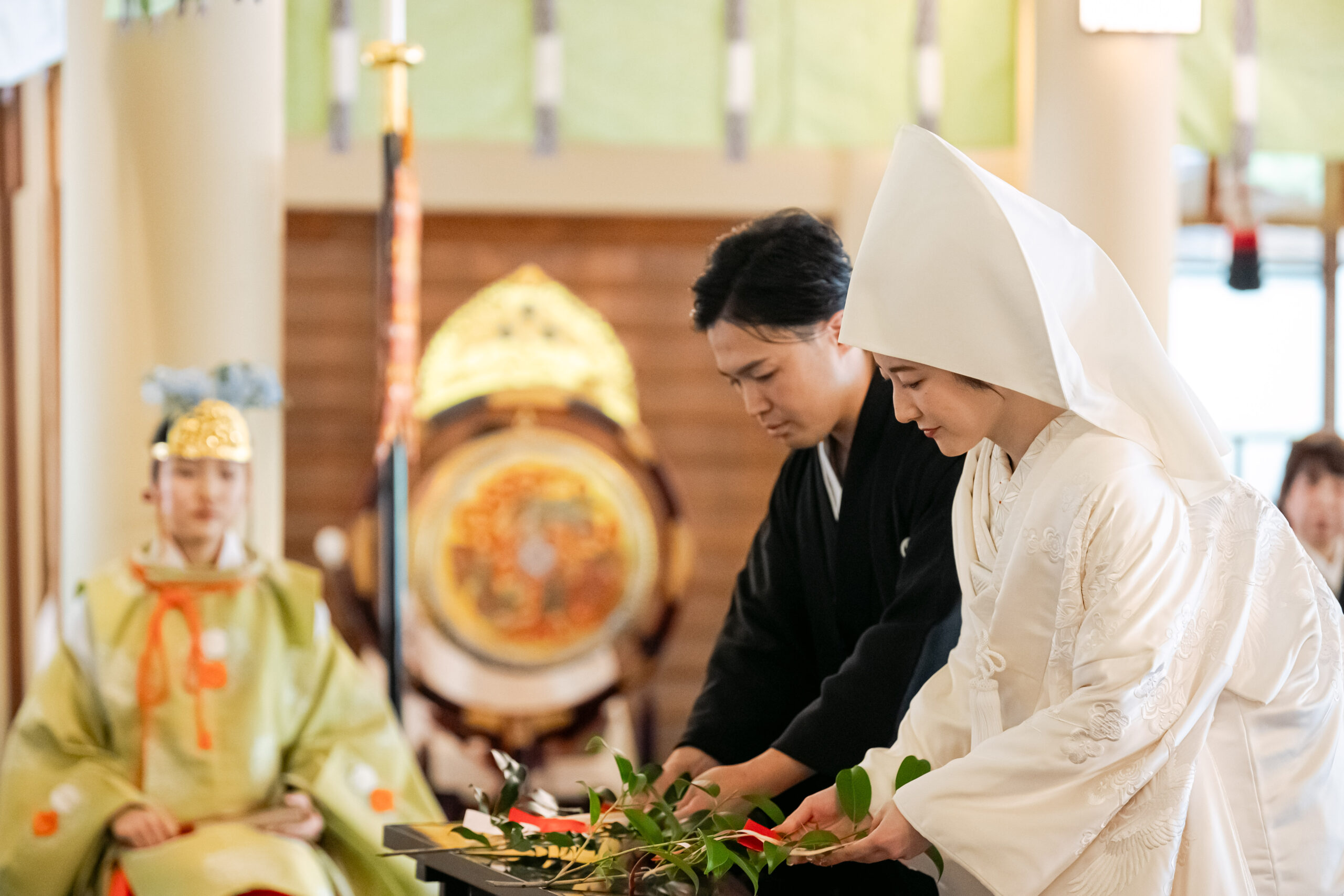 古式ゆかしい儀式の中で交わされた誓いは、お二人のこれまでの歩みとこれからの未来を静かに結び、厳かで神聖な時間が流れていました。