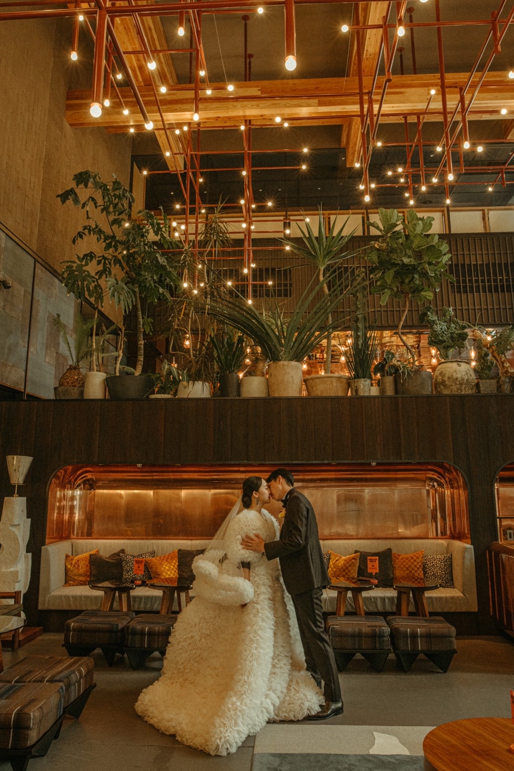 京都、烏丸の中心に構えるシアトル発のホテルブランド、Ace Hotel Kyoto(エース ホテル京都)。街を訪れるミュージシャンやアーティストたちが集まる場所をコンセプトに作られ、街の良さをありのままに活かしたホテルです。2020年にアジア初進出として京都に建設されたAce Hotelの建物の歴史は古く、西欧のモダニズムと伝統的な美意識が溶け合う吉田鉄郎 設計による名建築、旧京都中央電話局だった場所。大正生まれの歴史的建造物として登録有形文化財に指定され、長きにわたって街を見つめ続けてきたこの場所で、新しい人生の門出の瞬間を淡くロマンティックなドレスとともにお写真におさめられたお二人をご紹介します。